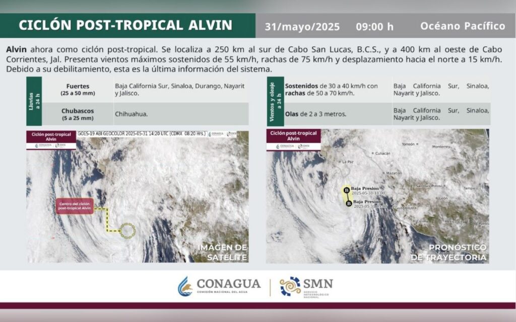 Alvin se debilita pero amenaza con fuertes lluvias camino al norte de México